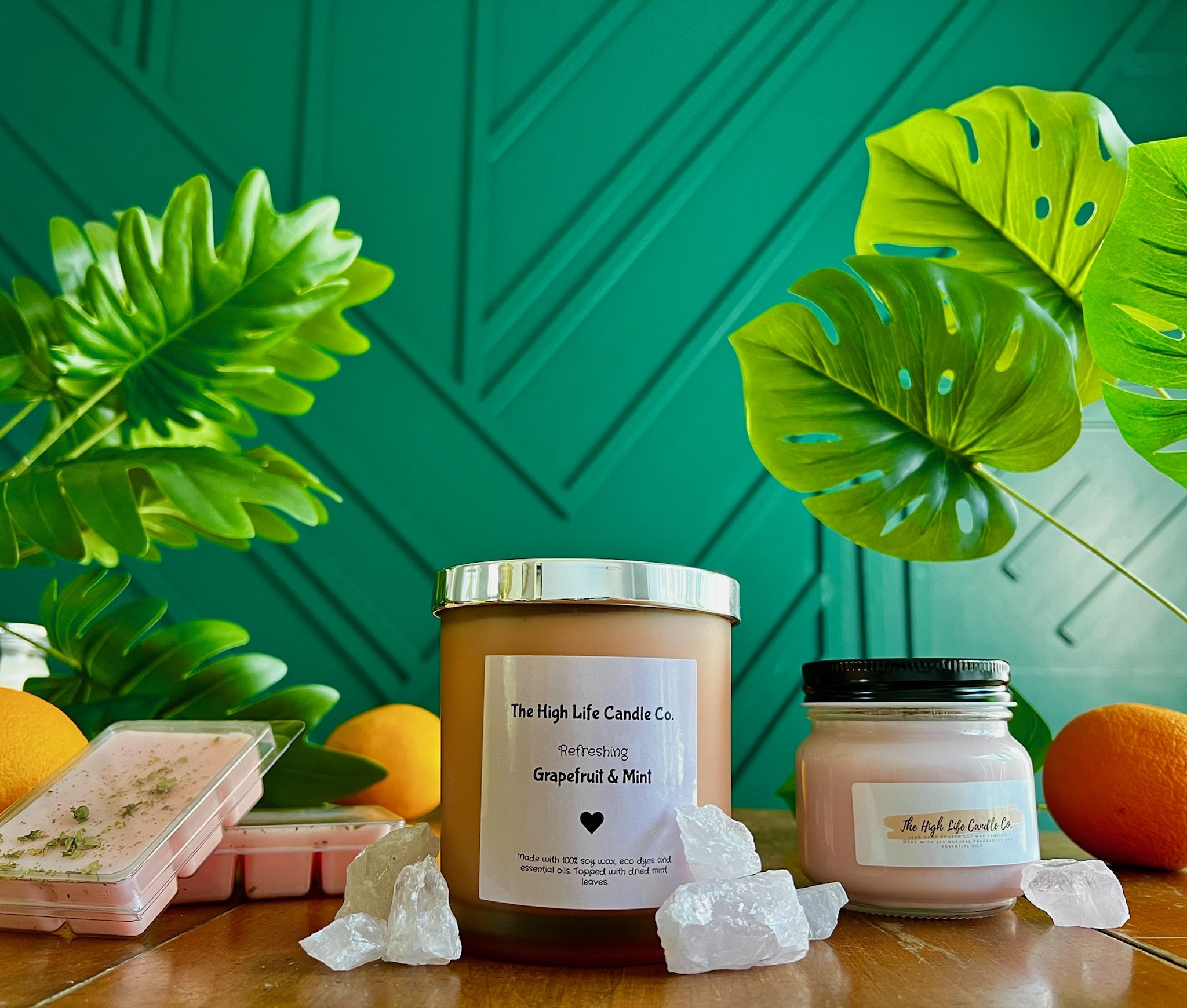 with 18 different fragrances, 100% soy wax, and clean ingredients in our candles and melts.